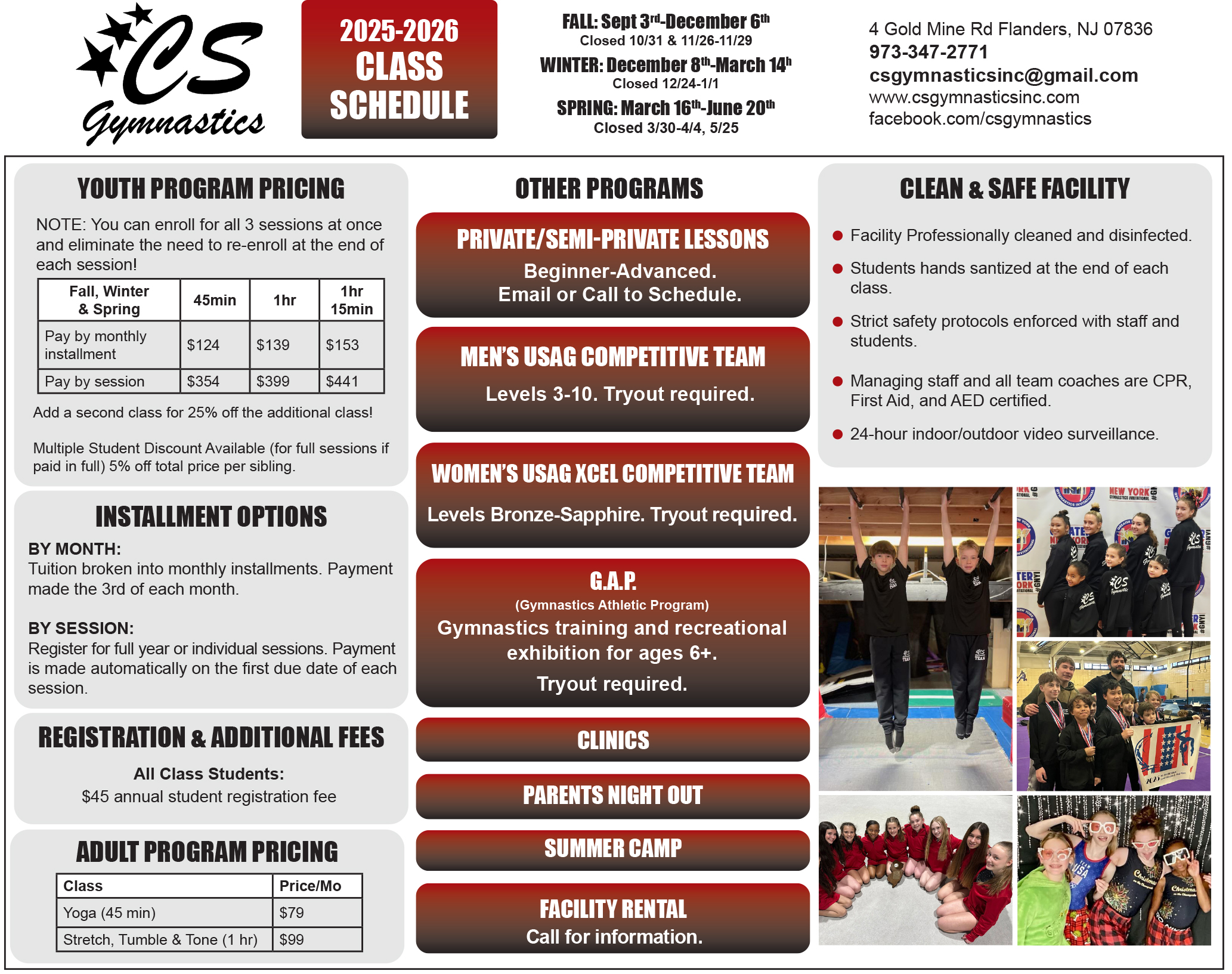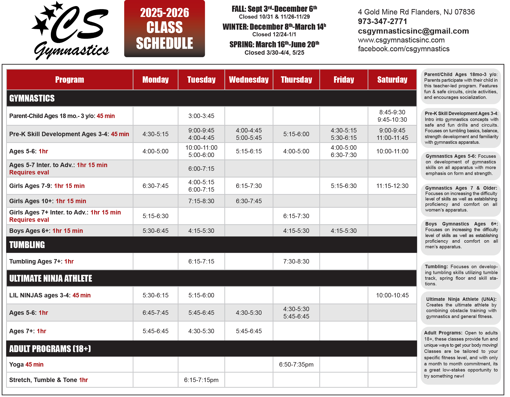 Please review the schedules below and register thru the Parent Portal to sign up!